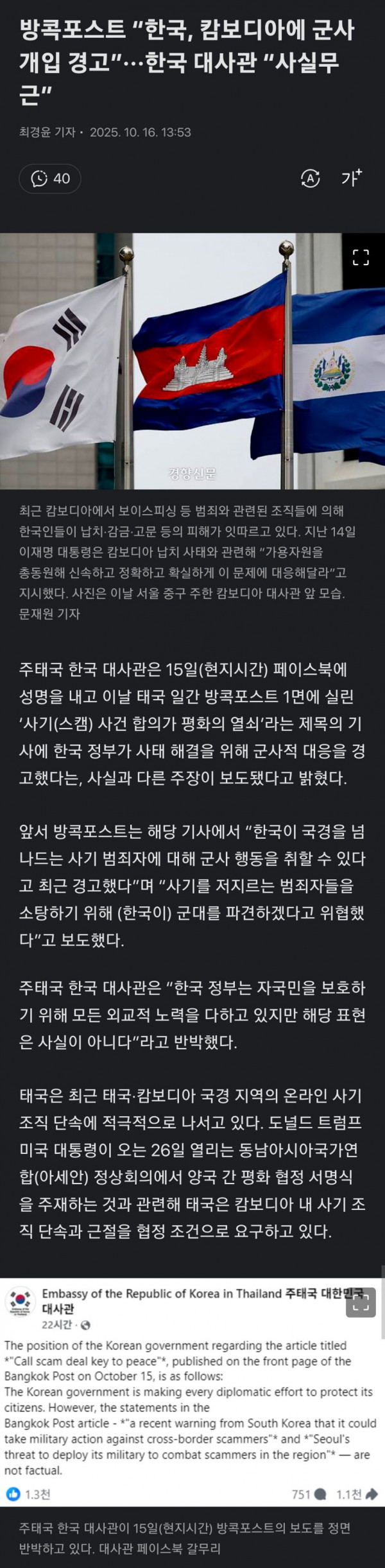 [유머] 태국, 이와중에 한국과 캄보디아 이간질 시도