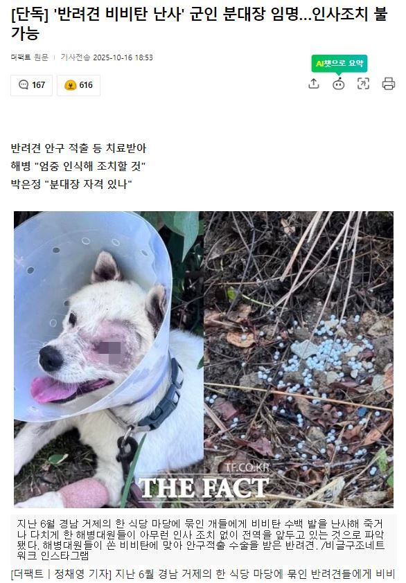 [사회] 반려견 비비탄 난사한 군인 분대장 임명