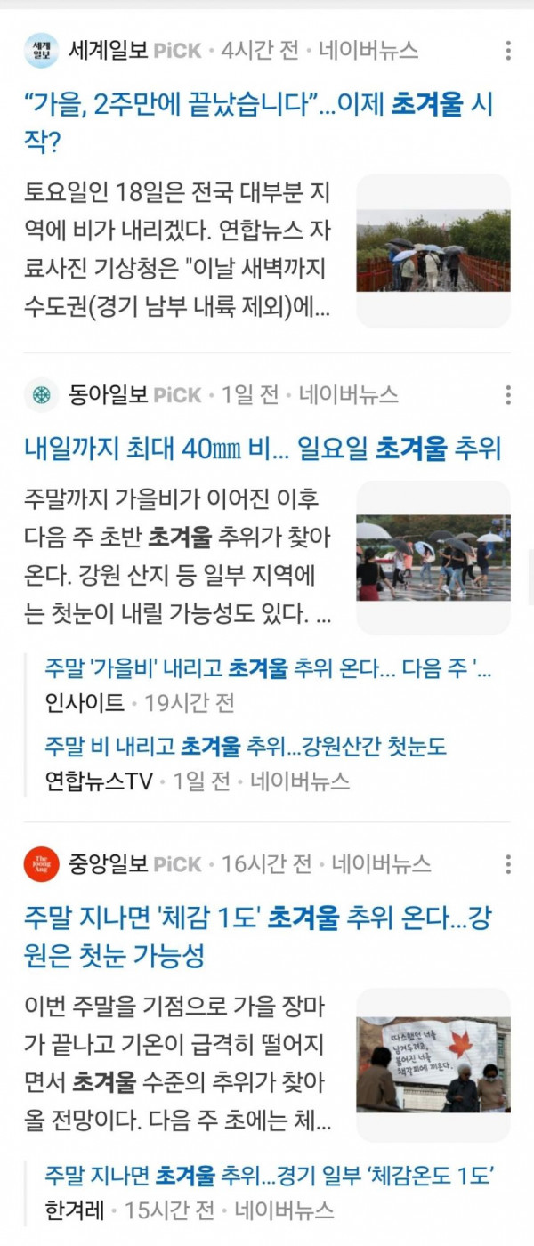 [기타] “가을, 2주만에 끝났습니다”…이제 초겨울 시작?