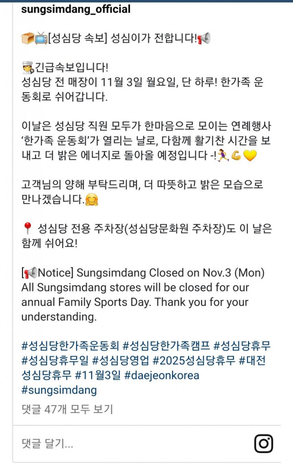 [기타] 11월 3일...성심당 전매장 휴무 [정보글]