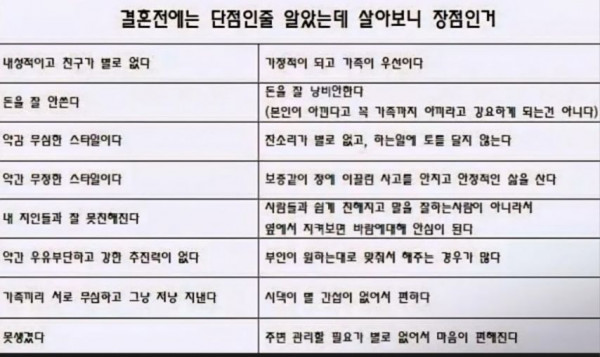 [유머] 결혼 전에는 단점인줄 알았는데 결혼 후 살아보니 장점인거.