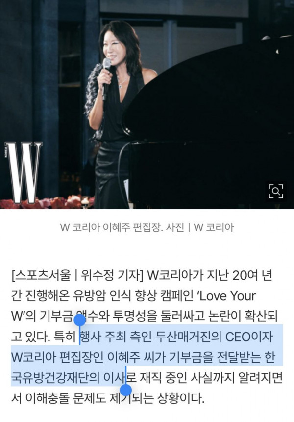 [유머] W코리아 편집장, 기부금 받는 재단 이사였다…화려한 자선행사의 ‘수상한 구조’