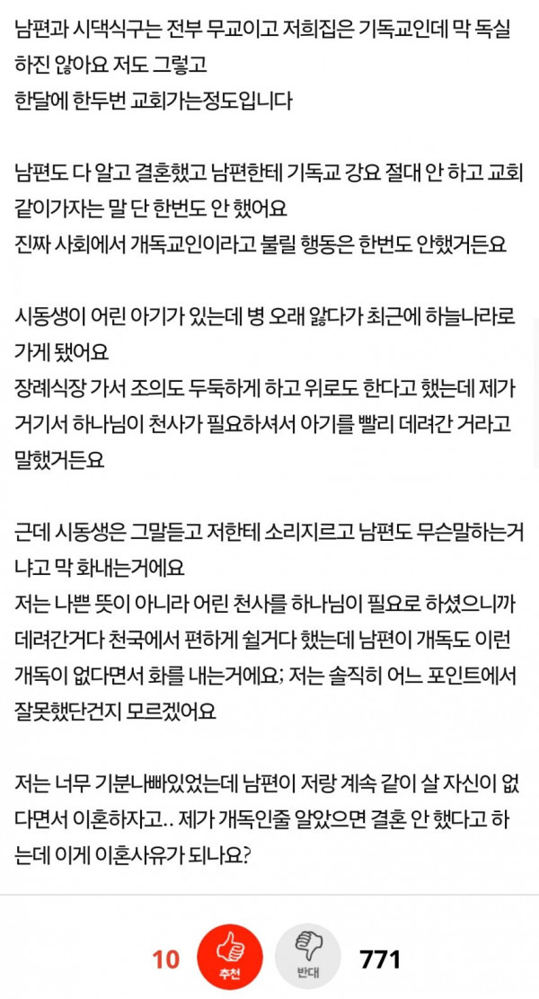 [기타] 남편이 저한테 개독이라고 비하하며 이혼하자는데요