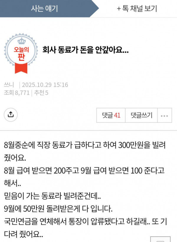 [유머] 회사 동료가 돈을 안갚아요.jpg