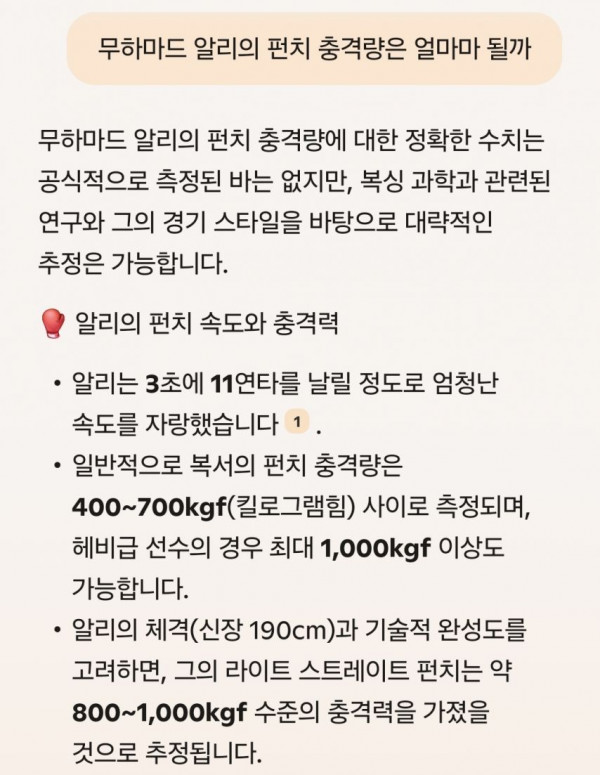 [기타] AI에게 물어본 무하마드 알리 펀치의 파괴력