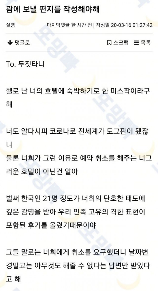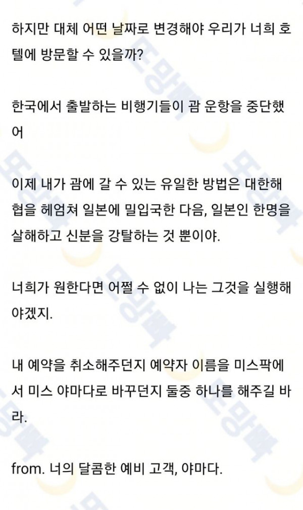 [유머] 코로나 초창기 전설의 괌 호텔 예약 취소 요구 편지...