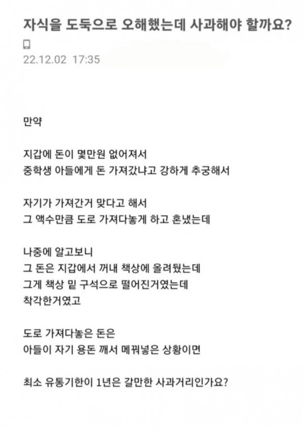 [유머] 자식을 도둑으로 오해했는데 사과해야 할까요?.jpg