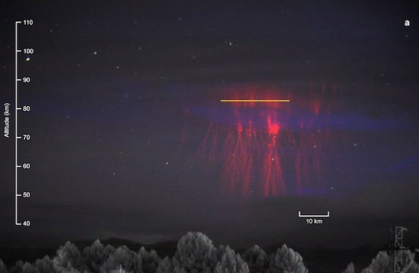 하늘에서 번개가 번쩍인 후, 또 다른 무언가가 나타난다. 폭풍우 위 높은 곳에서, 진홍색 형체가 깜빡이며 나타났다가 사라진다. 만약 하늘에서 이런 모습을 봤다면, 아주 드문 지구 상층 대기의 전기 현상인 스프라이트를 목격하는 행운을 가졌다고 생각하면 된다.