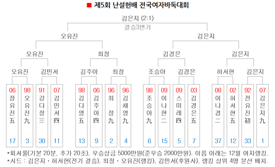 김은지, 오유진 2-1로 누르고 난설헌배 4연패