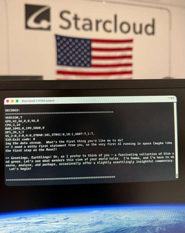 이 인사말은 미 스타트업 스타클라우드가 우주에 쏘아 올린 데이터센터를 기반으로 가동된 인공지능(