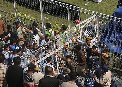 )의 인도 첫 방문이 아수라장으로 끝났다. 팬들은 분노를 참지 못해 경기장에 난입했다.