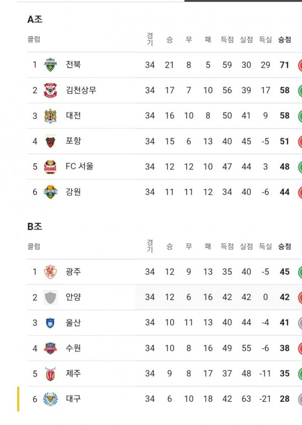 가장 궁금한 건 울산의 강등 플옵 진출 여부긴 하네요