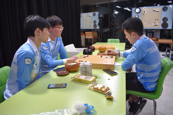 이날 수려한 합천의 검토실은 유난히 단촐했다. 김승진(3지명)과 박지현(4지명)이 같은 날 중국 청두시에서 열린 ‘녜웨이핑배 바둑 마스터스’에 출전하면서 2명의 공백이 생긴 탓이다. 바둑리그 운영 규정에 따르면, 해외에서 개최되는 세계대회 참가로 결원이 발생할 경우, 최소 인원(3명)으로 경기당 1인 1회에 한해 중복 출전할 수 있다. 결국 수려한 합천은 최소 인원 3명만으로 라인업을 꾸려야 하는 불리한 상황을 맞았다.