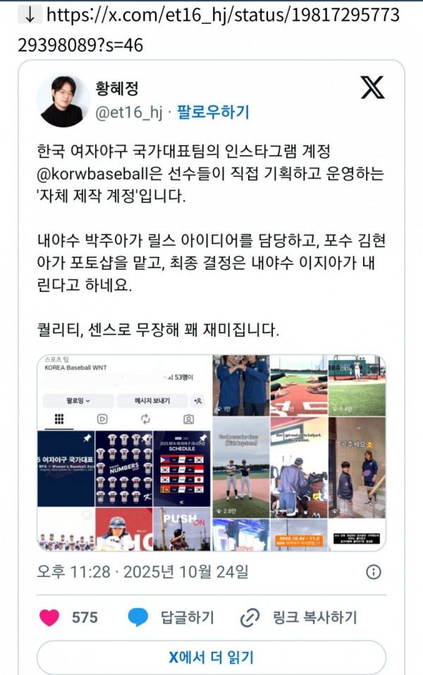 야구 좋아하는 분들은 친추 하시면 좋을 것 같아서 가져왔습니다