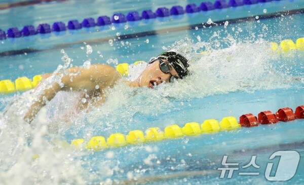 한국 수영 간판스타 황선우는 21일 부산 사직종합운동장 실내 수영장에서 열린 제106회 전국체육대회 남자 일반부 개인혼영 200m 결선에서 가장 먼저 터치패드를 찍었다.