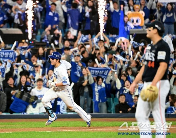하지만 2S은 상황이 달랐다. 투수가 매우 유리한 카운트. 누가 봐도 장타를 노리는 타자를 상대로 한 번 돌아갈 줄 아는 지혜도 필요했다. 자신있게 승부를 하는 것도 물론 좋지만, 타자가 김영웅이었기에 경계를 해야했다. 153km 직구가 다시 날아들었다. 약간 낮았지만 한가운데, 이미 김서현의 공을 두 번이나 눈에 익힌 김영웅의 방망이가 완벽한 궤적으로 돌았다. 맞는 순간 홈런을 직감할 수 있는 타구가 라이온즈파크 상공을 날았다.
