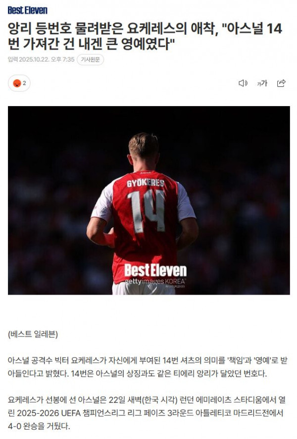 | 2 | 아스널
