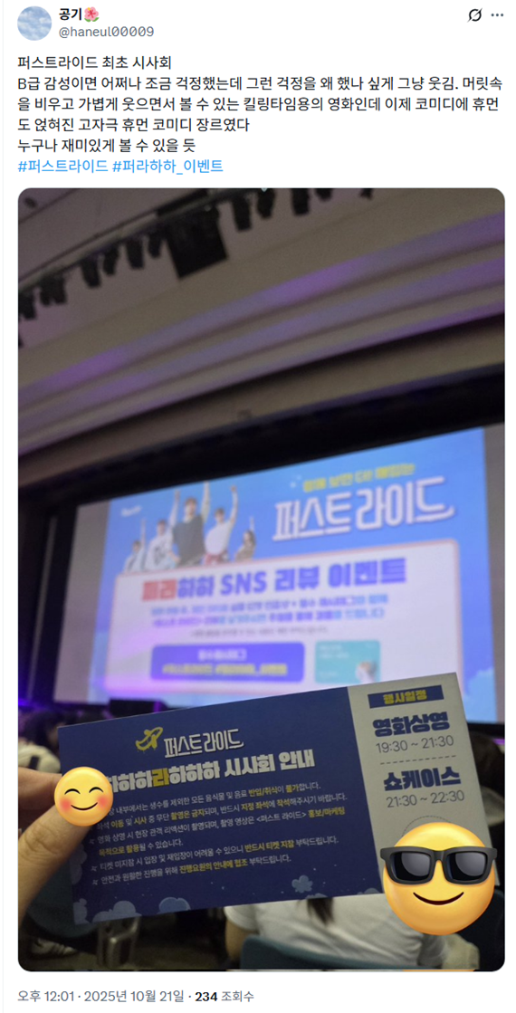 오늘 언론시사회했고 월욜에 최초 시사회함