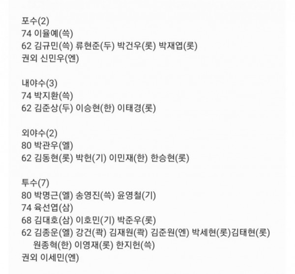 포수는 두 명을 뽑는데.....체력+면접+인성평가에서 이율예가 개판치지 않는 이상 한 자리는 할 것 같고