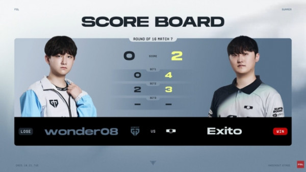 21일 잠실 DN 콜로세움에서 펼쳐진 '2025 FC 온라인 슈퍼 챔피언스 리그(FSL)' 서머 16강 4일 차 1경기에서 젠시티의 '원더08' 고원재와 디플러스 기아의 '엑시토' 윤형석이 맞붙었다. 그 결과, '엑시토'가 1, 2세트 모두 승리하면서 강력한 우승후보 '원더08'을 떨어트리는 대이변을 만들어냈다.