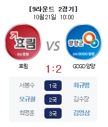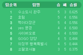 절체절명의 위기를 딛고 4승5패가 된 GOGO양양은 혼돈의 중위권 싸움을 이어갈 수 있게 됐다. 이겼다면 단�� 선두를 노려볼 수 있었던 효림은 5승4패로 뒷걸음치며 잠정 2위.