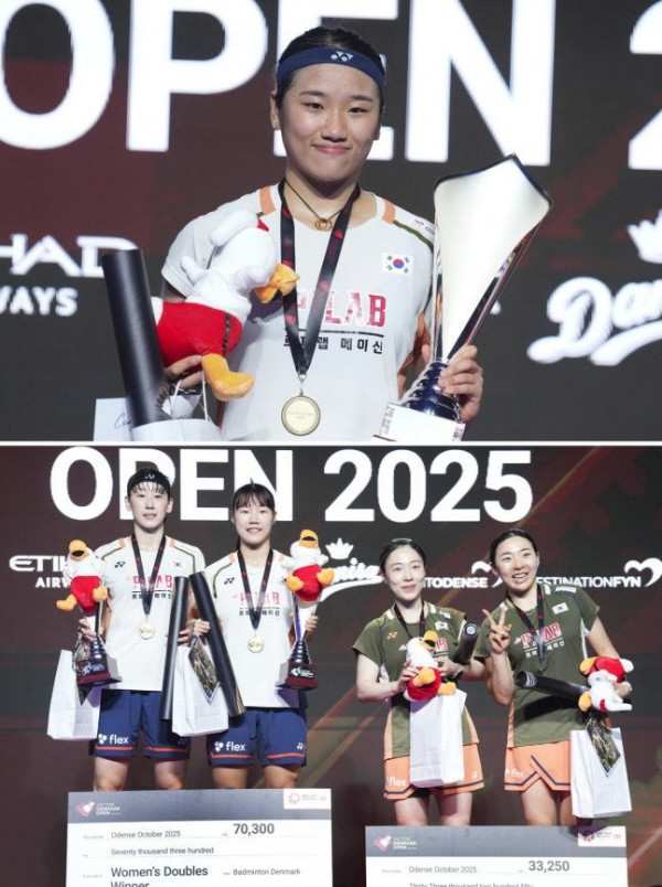 대표팀은 덴마크오픈을 금메달 2개, 은메달 1개로 마쳤다. 9번째 국제대회 우승을 노렸던 또다른 세계 1위 남자복식 김원호-서승재조는 16강전에서 발목이 잡혔다.