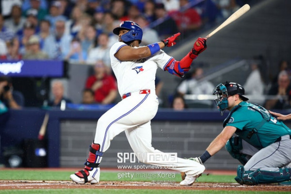20일(한국시간) 로저스센터에서 열린 시애틀과 아메리칸리그 챔피언십시리즈 6차전에서도 또 홈런을 치며 팀 승리를 견인하고 기어이 시리즈를 최종전인 7차전까지 몰고 갔다. 올 시즌 메이저리그 포스트시즌에서 최고의 스포트라이트를 모으는 선수다. 물론 한 경기만 놓고 보면 밀워키와 디비전시리즈 4차전의 오타니(10탈삼진+3홈런)겠지만, 시리즈 전체를 보면 단연 게레로 주니어가 가을 최강자다.