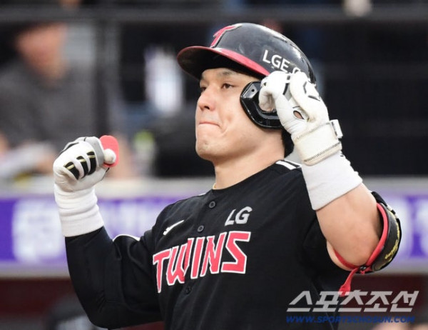 27일 대전 한화생명볼파크에서 열린 KBO리그 한화와 LG의 경기. 1회초 LG 박동원이 한화 문동주를 상대로 투런홈런을 날렸다. 손을 들어보이는 박동원. 대전=송정헌 기자[email protected]/2025.09.27/