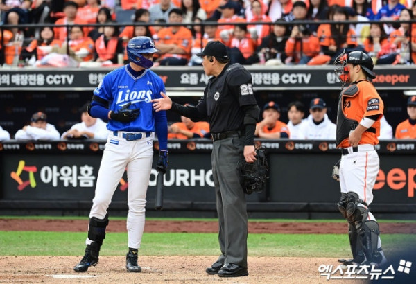 삼성 감독은 그라운드로 나와 주심에게 폰세의 투구 템포에 대해 어필했다. 주심 역시 상황을 예의주시하며 폰세가 피치클락 활용 과정에서 고의적인 시간 지연이 있었는지 관여했다.