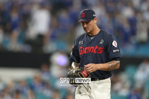▲ 롯데의 시즌 막판 가장 큰 한숨으로 작용하며 고개를 숙인 메이저리그 38승 경력의 빈스 벨라스케즈 ⓒ곽혜미 기자