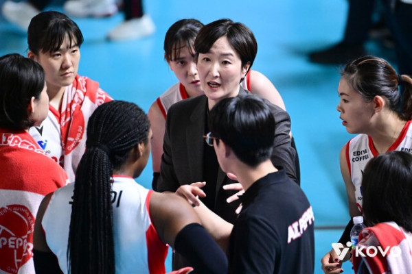 장소연 페퍼저축은행 감독이 9일 대전 충무체육관에서 열린 정관장과의 경기에서 선수들에게 작전 지시를 하고 있다. 한국배구연맹 제공