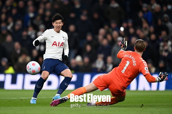 당시가 처음은 아니었다. 2021-22시즌 PL 28라운드 맞대결에서 픽포드는 손흥민에게 실점을 허용하며 비판을 받았다. 전반 16분 손흥민은 데얀 쿨루셉스키의 패스를 이어받아 픽포드와 일대일 찬스를 맞이했다. 손흥민은 강하게 깔아 차는 슈팅으로 득점을 기록했는데, 공이 골키퍼의 정면으로 향했음에도 픽포드는 선방하지 못했다. 결국 에버턴은 토트넘에 0-5 대패를 당했다.
