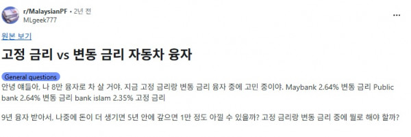 레딧에서 글을 가져왔는데 이 사람은 9년 할부를 고정금리로 할지, 변동금리로 할지 상담하는 글을 올렸죠