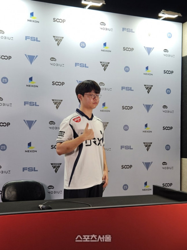 DRX ‘찬’ 박찬화가 14일 서울 잠실DN콜로세움에서 열린 2025 FSL 서머 16강 승리 후 취재진 인터뷰에 응하고 있다. 잠실 | 강윤식 기자 [email protected] |