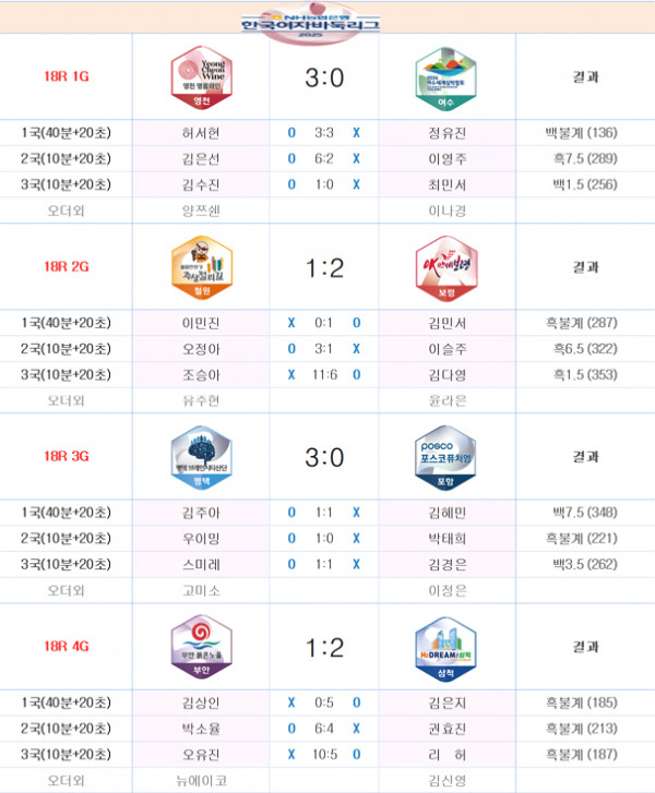 2025 NH농협은행 여자바둑리그 통합 18라운드