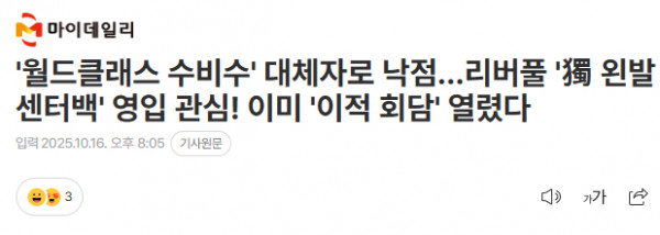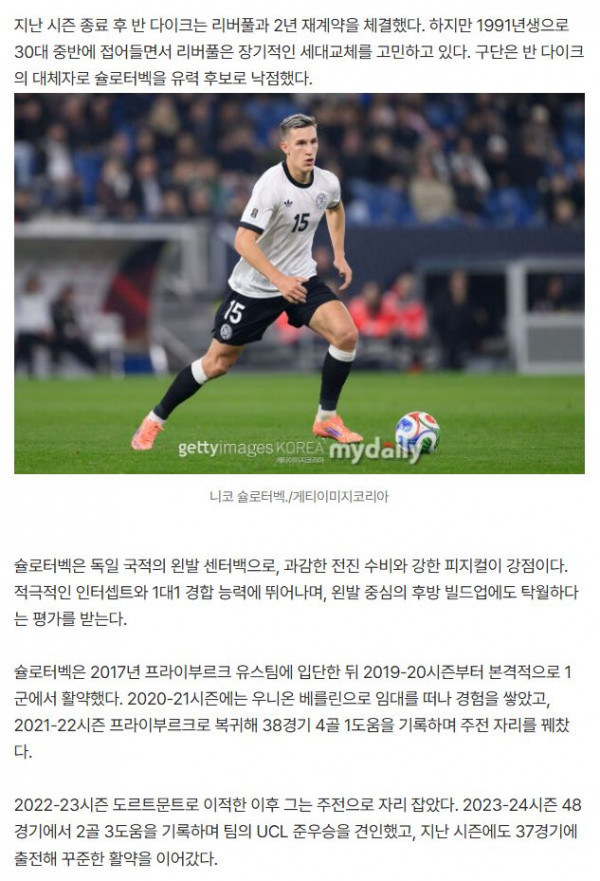 '월드클래스 수비수' 대체자로 낙점...리버풀 '獨 왼발 센터백' 영입 관심! 이미 '이적 회담' 열렸다
