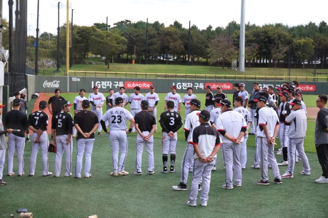 ▲ 15일 청백전을 마친 뒤 훈련을 준비하는 LG 선수들. ⓒ LG 트윈스