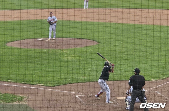 장현식은 첫 타자 김주성 상대로 최고 145km 직구로 유격수 땅볼로 아웃을 잡았다. 이어 손용준을 138km 변화구로 2루수 뜬공으로 2아웃이 됐다.