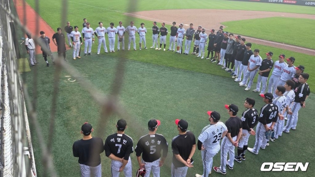 [OSEN=이천, 한용섭 기자]LG 트윈스 선수들이 15일 이천 LG챔피언스파크에서 열린 청백전을 마치고 미팅을 하고 있다. /[email protected]