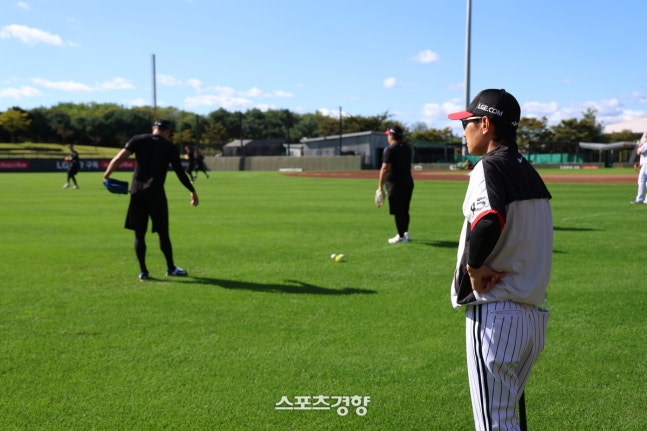 염경엽 LG 감독이 지난 8일 이천 LG챔피언스파크에서 선수들의 훈련을 지켜보고 있다. LG 트윈스 제공