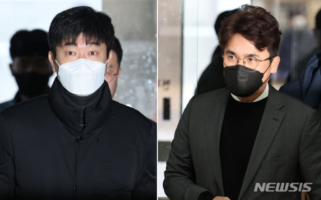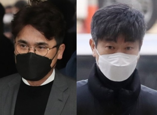 지난해 1월 서울중앙지방법원에 들어서는 장정석 전 단장(왼쪽)과 김종국 전 감독. /사진=뉴스1