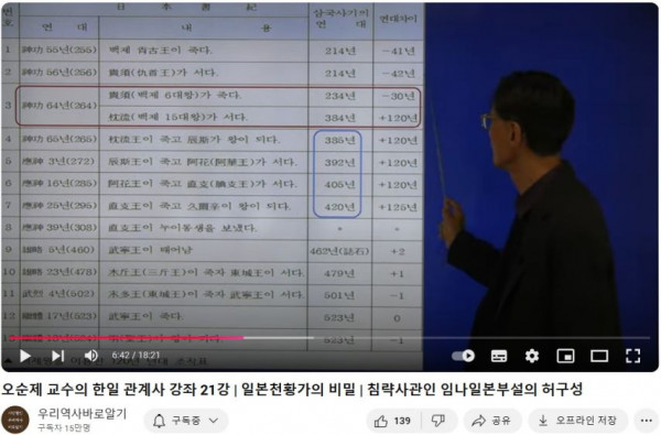 일본서기 년도가 120년 차이가 있다고 주장하는