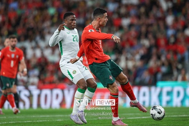 전반 추가 시간에도 골망을 출렁였다. 이번엔 왼 측면에서 올라온 누누 멘데스(파리 생제르맹) 크로스를 단 한 번의 터치로 역전골로 바꿔놓았다. 자신의 통산 948번째이자 A매치 143번째 득점을 완성했다.