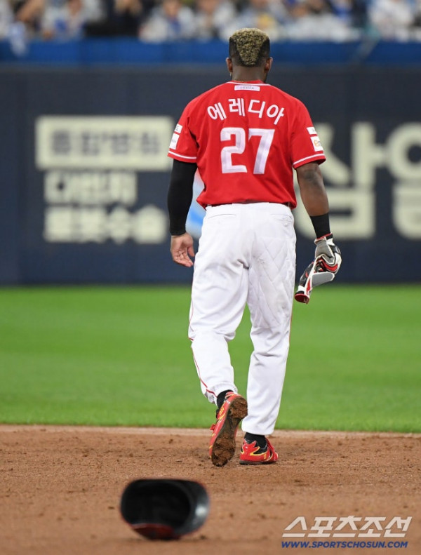 에레디아는 이날 6회초 자신의 내야 안타 직후 최정의 병살타로 런다운에 걸려 아웃되자, 헬멧을 바닥에 내동댕이치며 안풀리는 공격에 대한 답답한 심경을 표출하기도 했다. 그러나 두번의 기회는 없었다.