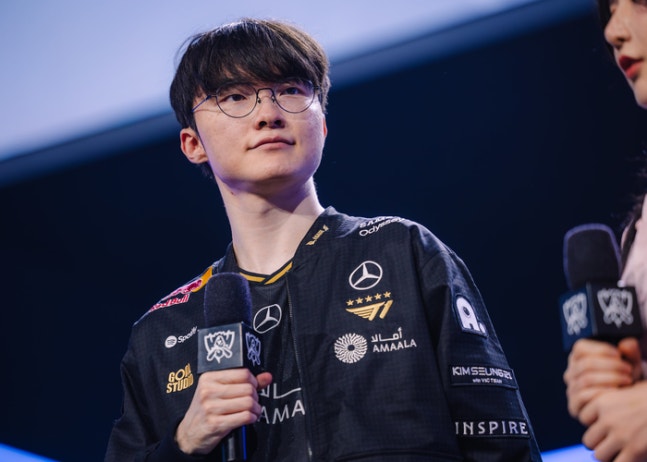 T1은 14일(한국시간) 중국 베이징 스마트e스포츠 센터에서 열린 ‘2025 LoL 월드챔피언십(롤드컵)’ 플레이-인에서 중국(LPL)의 인빅터스 게이밍(IG)을 세트 스코어 3-1로 꺾었다.
