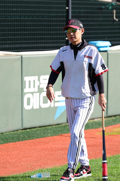 염경엽 감독이 선수단 훈련을 지켜보고 있다. (사진=LG)