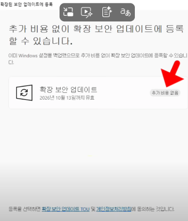 ms에 로그인 되있으면 이미지 처럼 해주면 내년 10월까지 연장 가능합니다.