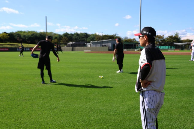 LG 염경엽 감독이 이천 LG 챔피언스파크에서 2025 한국시리즈 대비 합숙 훈련을 지켜보고 있다. /사진=LG 트윈스 제공
