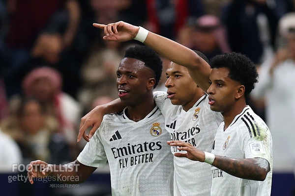 비니시우스 주니오르(왼쪽부터), 킬리안 음바페, 호드리구(이상 레알마드리드). 게티이미지코리아