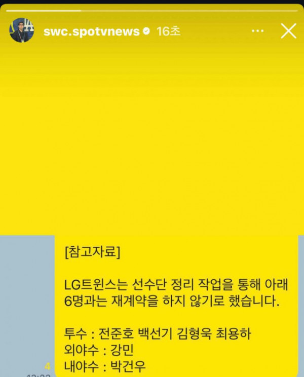 한화,기아,롯데에 이은 엘지,두산이 오늘 방출자 발표